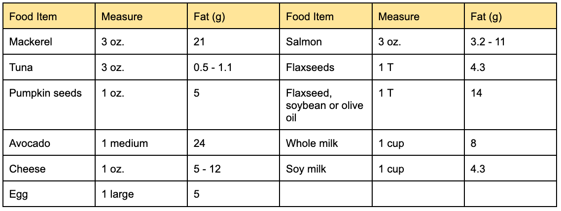 Table 1. Fat Content in Food (USDA)