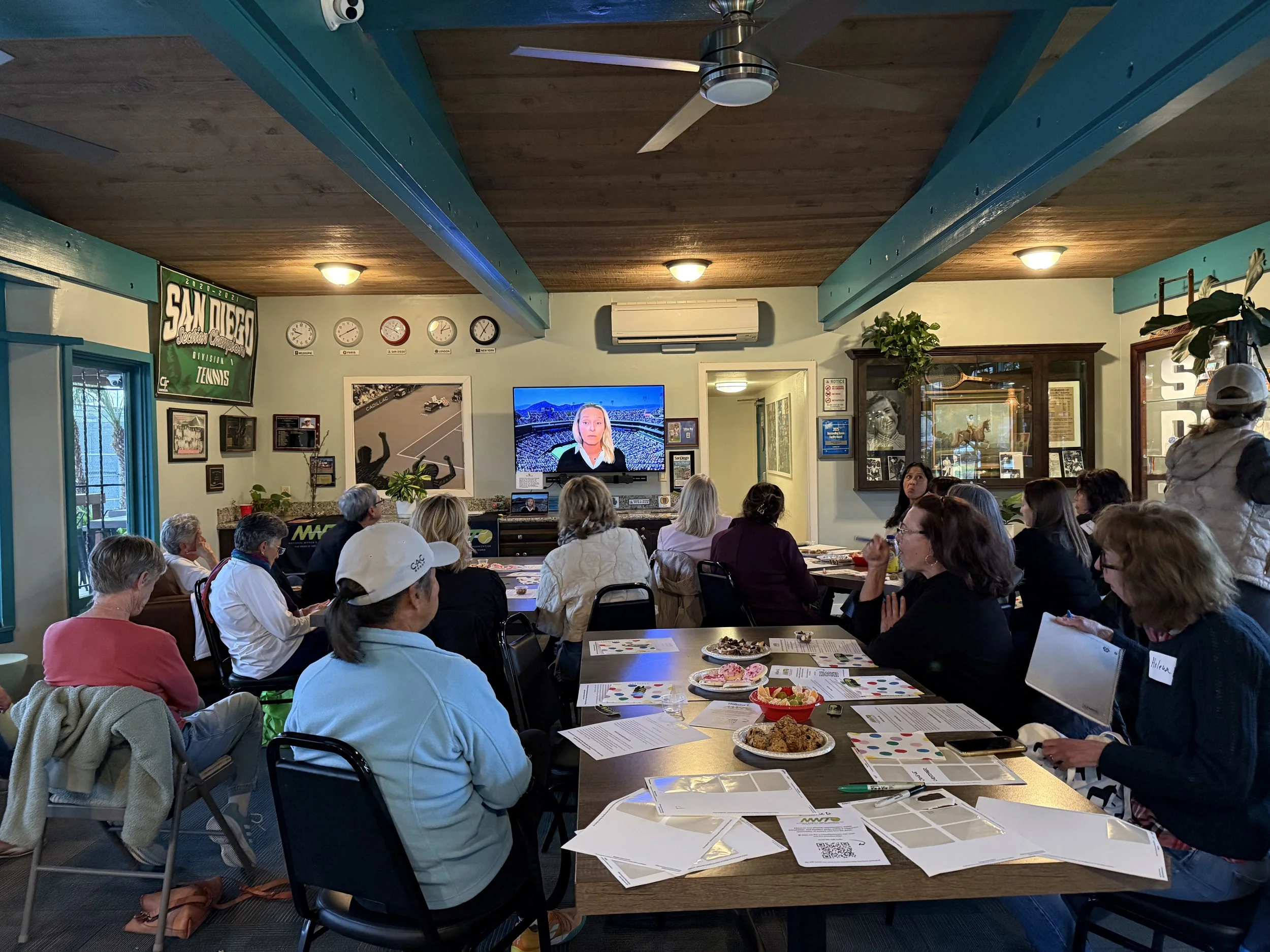 The NWTO Ambassador Pilot Program made its debut on February 19 when Liane Bryson hosted a San Diego pop-up at the Balboa Tennis Club, proving that not even pounding rain and thunder can keep tennis players away from a good gathering.
