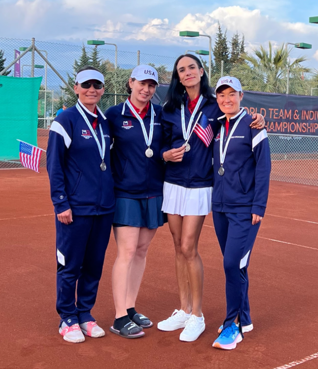 My team, made up of Anda Perianu, Yulia Bolotova, Isabela Iantosca and me, Mariko Fritz-Krockow, arrived in Antalya ready for battle in the 40s. Expectations were high as the 2022 team had gone home with a silver medal but this team wasn’t about to let that pressure get to them. In fact, it made us fight even harder, especially in a hard semi-finals against the clay-ready Spanish team. Team USA reached the finals without dropping a single match. And then it was time for a rematch of last year’s finals against Germany! Unfortunately, we couldn’t pull through and lost 2-1. But we sure are proud of our silver medals.