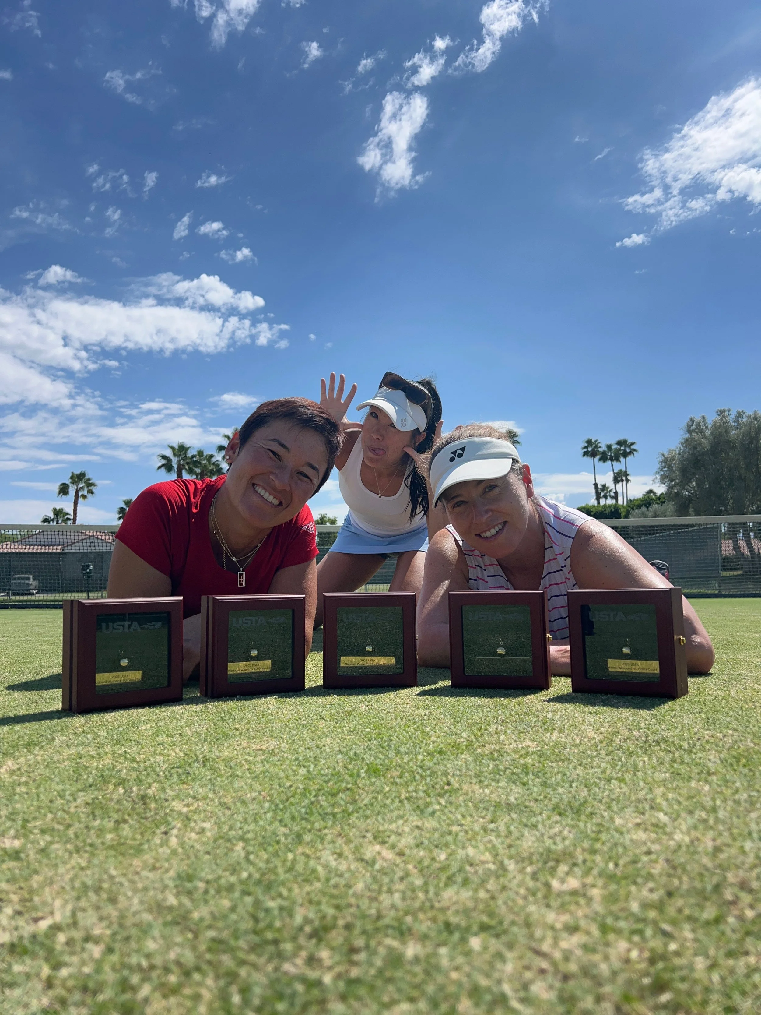 Despite the desert heat, which peaked above 100°F on several days, conditions were more bearable than last year. Players were surely grateful to be competing on grass courts rather than hard courts in such temperatures. Let’s hope for cooler weather when we return for the Level 1 Hard Court Nationals in October.